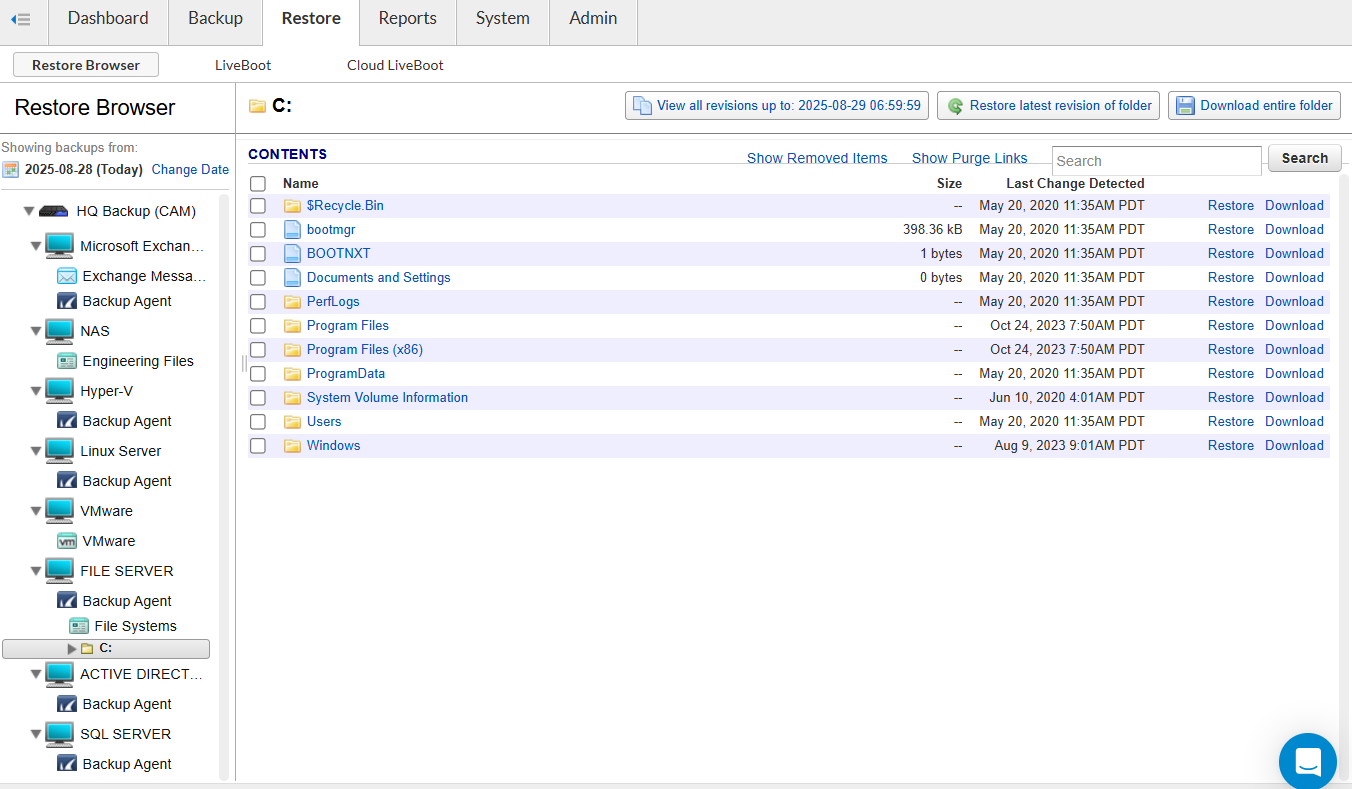 Restaure ou descarregue quaisquer ficheiros de cópia de segurança utilizando uma interface simples que funciona como o seu sistema de ficheiros local.