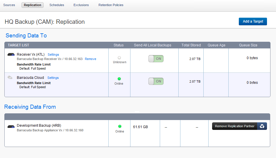 Os dados em backup podem ser replicados para outros sites ou para a Barracuda Cloud segura, para evitar um único ponto de falha na sua proteção de dados.
